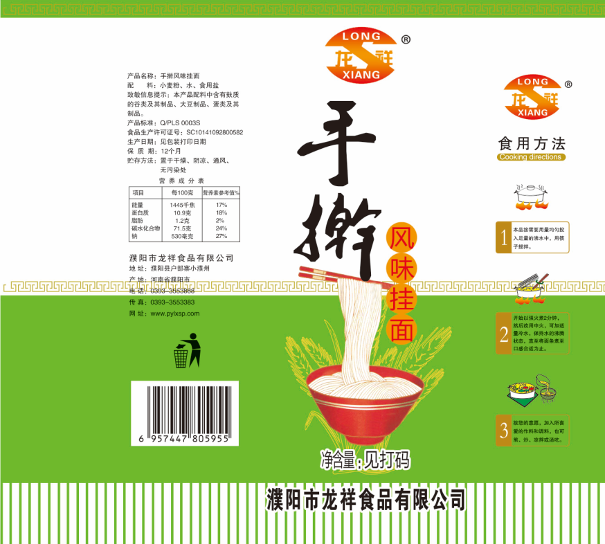 濮陽市龍祥食品有限公司位于河南省濮陽縣戶部寨鎮(zhèn)小濮州,始建于1994年,前期投資200萬元,經(jīng)過幾年的努力,大力開發(fā)市場,由于市場的需求量急劇上升,出現(xiàn)供不應(yīng)求,于2004年擴(kuò)建,建成一座新型的現(xiàn)代化面粉加工企業(yè),并擁有全國先進(jìn)全自動(dòng)生產(chǎn)設(shè)備一套,產(chǎn)量由以前的100噸/天,提高到現(xiàn)在400噸/天。 2012年再次擴(kuò)大規(guī)模申請為濮陽市龍祥食品有限公司,注冊資金500萬元。2012年又投資800萬元新建掛面生產(chǎn)線一條,日產(chǎn)掛面50噸。龍祥食品有限公司現(xiàn)有職工120余人,總工程師1人,專業(yè)技術(shù)人員10人,經(jīng)濟(jì)師1人,會(huì)計(jì)師1人,銷售人員2人,優(yōu)秀專業(yè)人員20余人?! ↓埾楣咀詣?chuàng)建以來,社會(huì)效益十分可觀。公司一直以“今天的質(zhì)量,明天的市場”為信念,“一切為了客戶需求,竭誠追求完美品質(zhì)”為企業(yè)宗旨,走專業(yè)化經(jīng)營和職業(yè)化管理的路子。